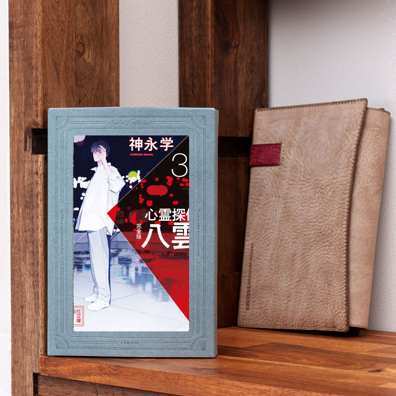 UNROOF様ではペンケースやお財布等、細部までこだわった革小物を作られており、今回小説家の神永学氏のデビュー20周年記念のオリジナルブックカバーを制作、そのパッケージに採用いただきました。