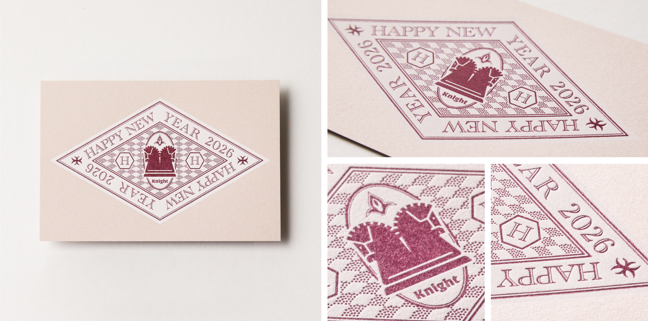 2026年の干支が馬ということで、チェスのナイトをモチーフにした年賀状。